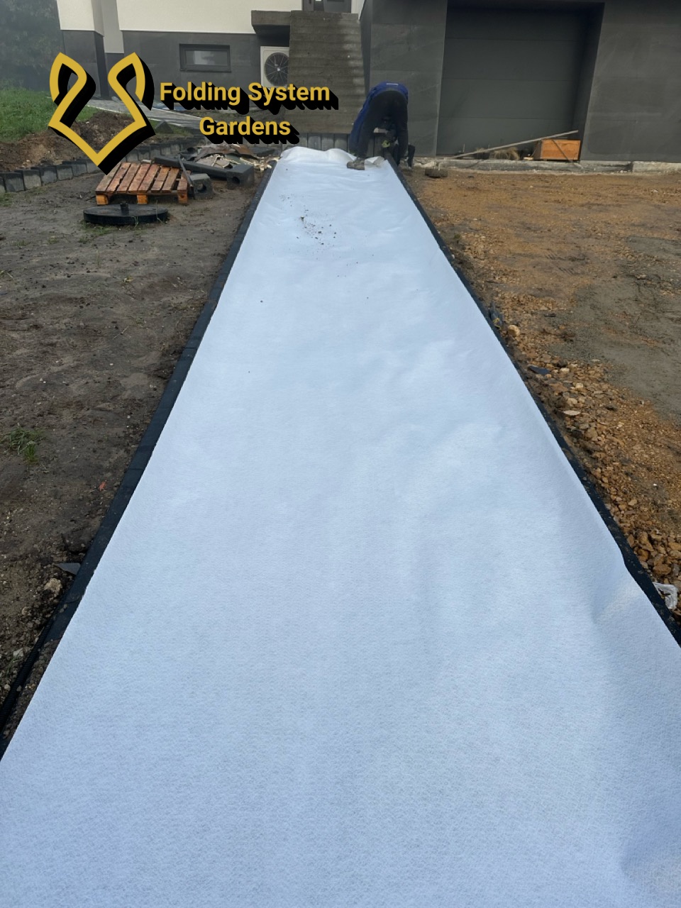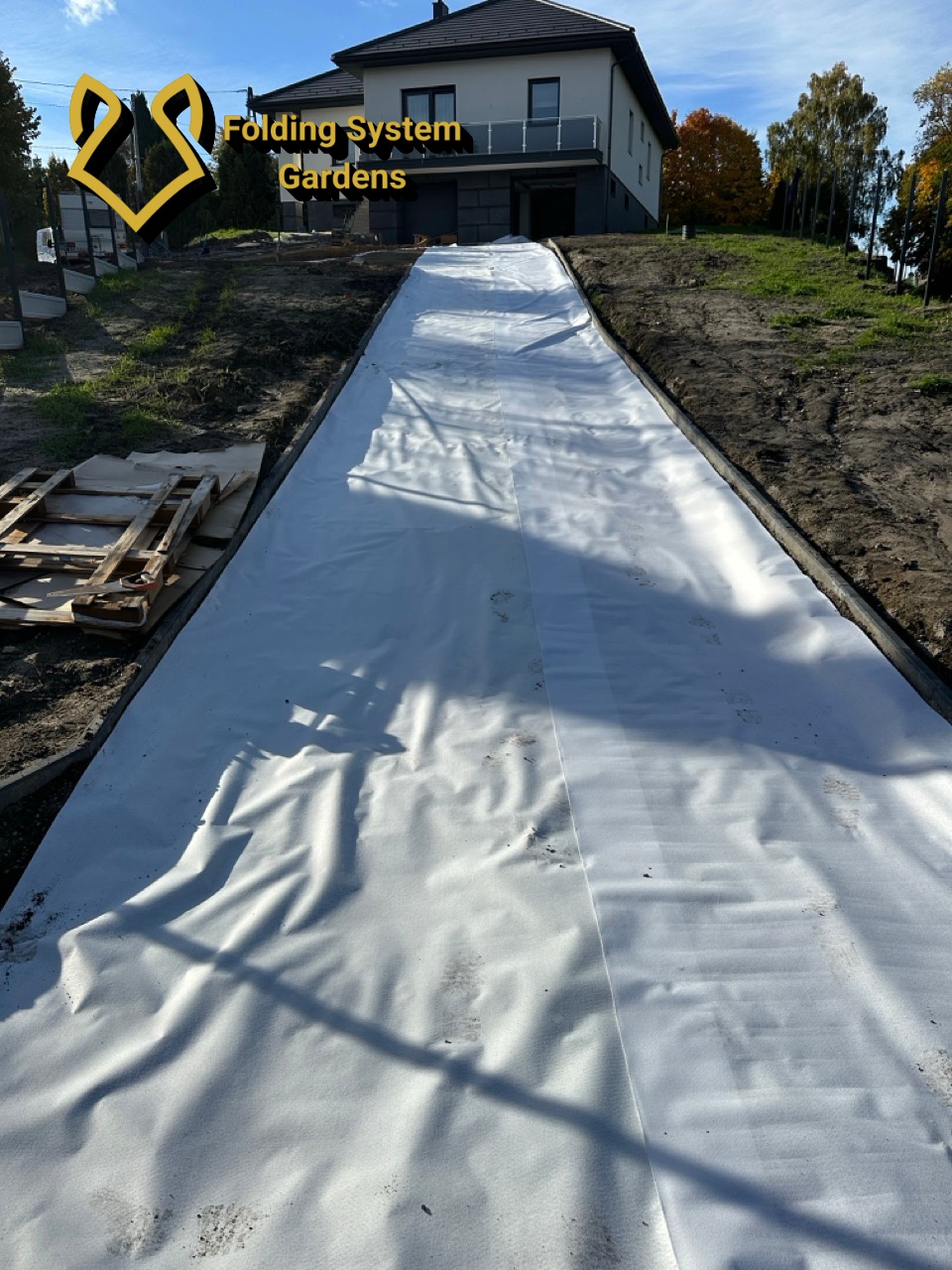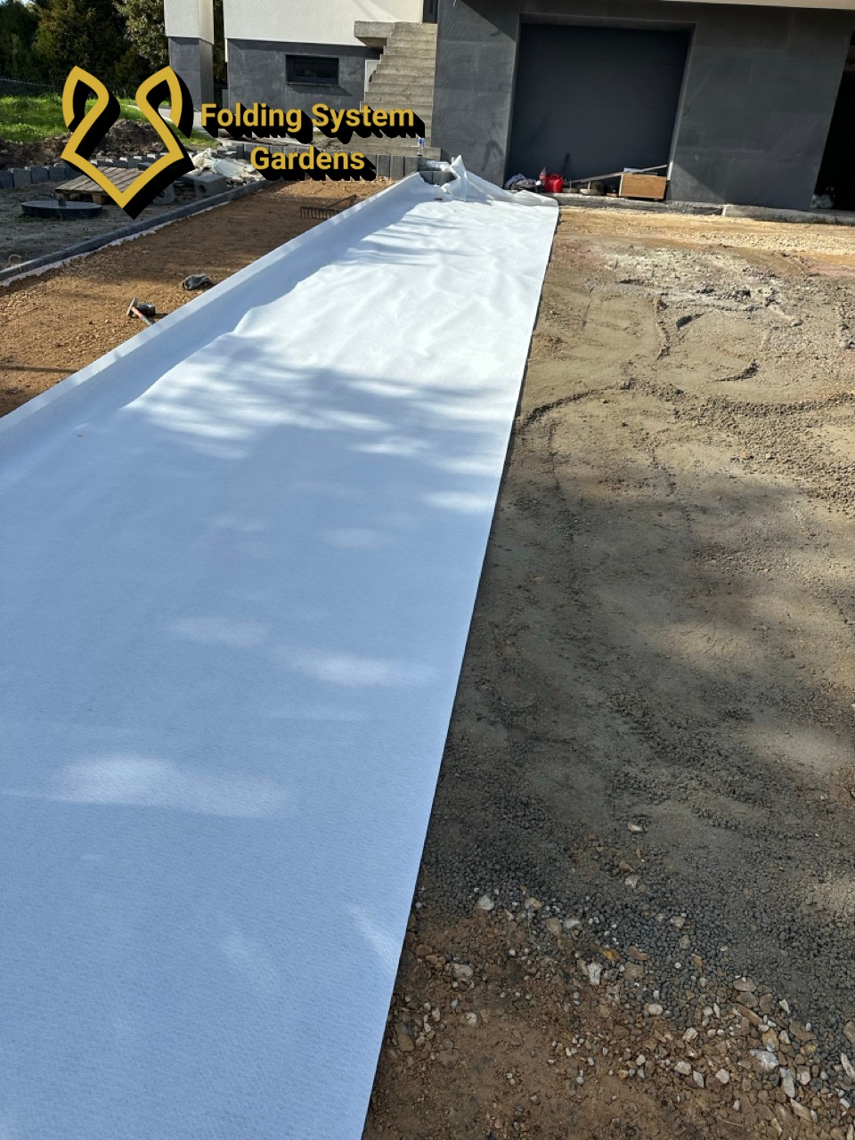 Rozłożenie geowłókniny rozdzielającej warstwy podbudowy